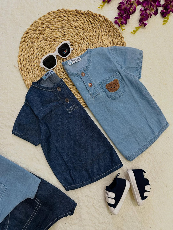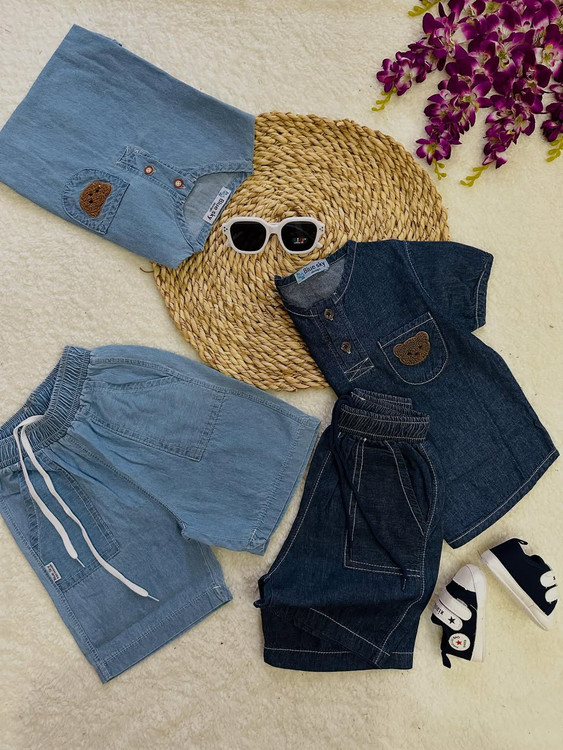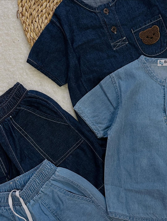 و شلوارک جین اسپرت دو رنگ: وقتی دنبال یه ست خاص و راحتی! این تیشرت و شلوارک جین اسپرتمون هم آبی روشن داره، هم آبی تیره! توی ویدئو اول با یه حرکت خفن بازش کردم و بعدش تو عکسها جنس و دوخت هر دو رنگ رو کامل نشون دادم اگه اهل استایل ساده ولی شیک برا کوچولوت هستی، این ستو از دست نده! @kocholoha_71 @kocholoha_71 مناسب 1سال و نیم تا 8 سال سایز 1 قد تیشرت 37 پهنا 31 قد شلوارک 32 سایز 2 قدتیشرت 42 پهنا 33 قد شلوارک 36 سایز 3قدتیشرت 45 پهنا 35 قدشلوارک 38 سایز 4 قدتیشرت 49 پهنا 37 قدشلوارک 42 سایز 5 قدتیشرت 54 پهنا 40 قدشلوارک 45 یکی دوسانت اختلاف در نظر بگیرید (هر عکس و ویدئو تو نور طبیعی گرفته شده تا هم رنگ و هم جنس واقعی کار رو ببینی. سایزها محدوده!) @kocholoha_71 @kocholoha_71 نظرتو تو کامنتا برام بنویس #جینکودک#مدبچه#لباسشیککودک#جینابی