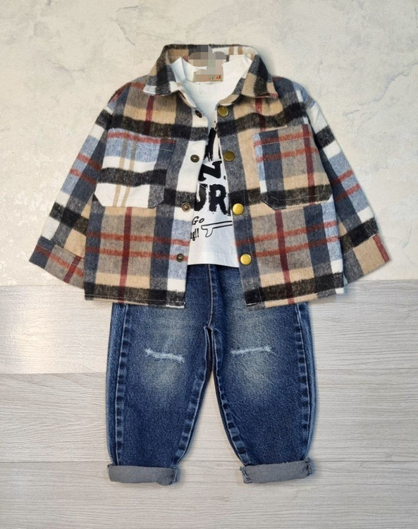 ست 3 تیکه پسرونه برای عید فوق العاده شیک و کاربردی کت و شلوار جین و تیشرت
