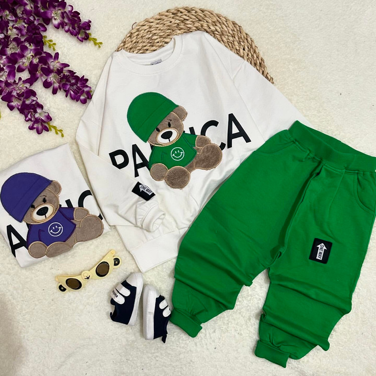 بلوز و شلوار بچگونه با طرح تدی که همیشه طرفدار داره اگر از اکسپلورر میای اول کنکهگمموننکنی چون همیشه کلی استوری با کیفیت عالی داریم @kocholoha_71 @kocholoha_71 بلوز وشلوار اسپرت با طرح تدی کلاهدار دوطرف بلوز طرحدار شلوار جیبدار روی بلوز تدی برجسته سایز۴۵،۵۰ تدی کلاهدار سایز 50 قد بلوز 47 پهنا 42 قدشلوار 63 سایز 45 قد بلوز 41 پهنا 38 قدشلوار 57 یکی دوسانت اختلاف در نظر بگیرید جنس دورس لاکرادار عالی دور مچ دست و پا و یقه کشبافت
