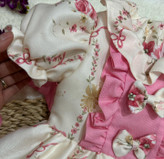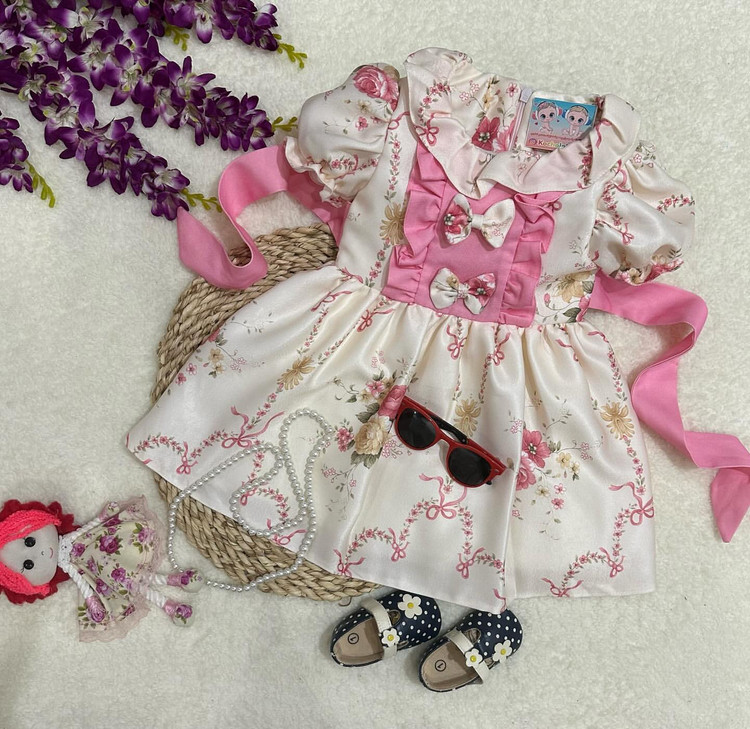 پشت پیراهن زیپدار،دوتا بند داره که پاپیون میشه جلوی پیراهن دوریقه واستین با چین های خوشگل جذابترش کرده جنس ژاکارد باکیفیت دوخت عالی مناسب ۲تا۸سال سایز1 قد پیراهن 50 پهنا زیر بغل 26 سایز2 قد پیراهن 55 پهنا 27 سایز3 قد پیراهن 56 پهنا 29 سایز 4 قد پیراهن 59 پهنا 30 سایز5 قد پیراهن 63 پهنا 34 سایز 6 قد پیراهن 69 پهنا 36 یکی دوسانت اختلاف در نظر بگیرید استر دار وتوردار که دامنش پفکی وخوشگل وایسته