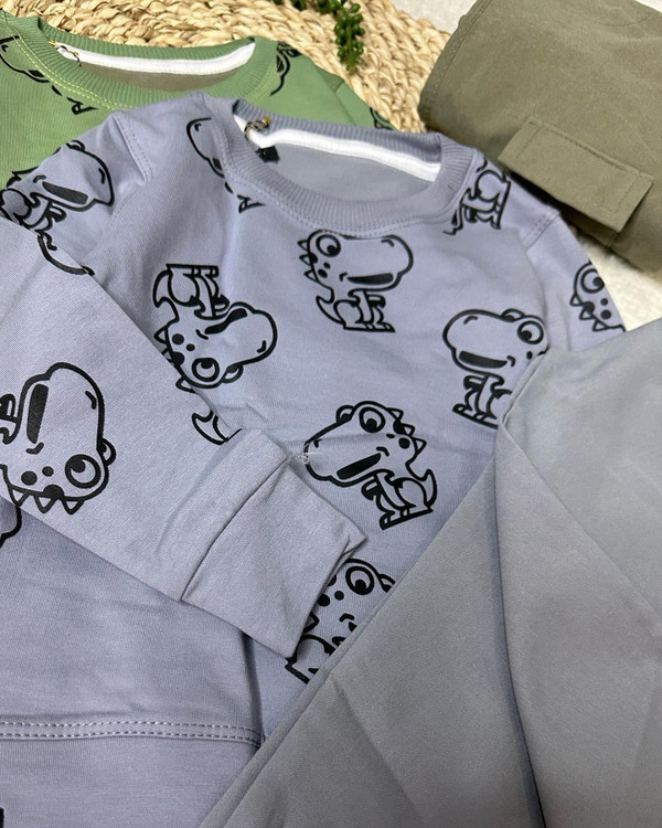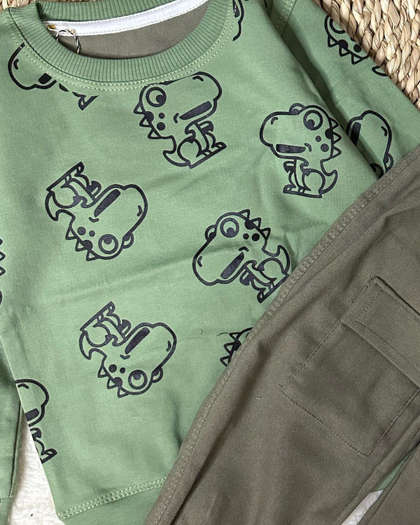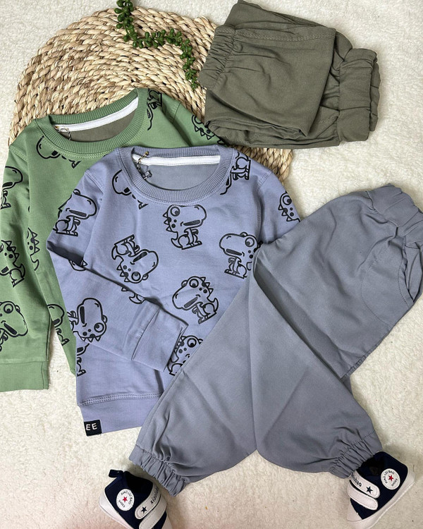 به نظر شما برای بچه ها ست بهتره یا تک ؟؟ من که میگم ست یه چیز دیگس هم خاصتره هم کارتو راحتتر میکنه،اونم بااین طرح و وکیفیت @kocholoha_71 @kocholoha_71 دورنگ سبزوطوسی با طرح دایناسورها جنس بلوز پنبه درجه پارچه عکس دایناسور جنس شلوار کتان کش، جیبدار سایز ۴۰تا۵۵ کیفیت جنس ودوخت تضمینی