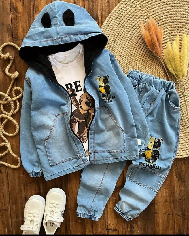 3 تیکه سوییشرت و شلوار جین با تیشرت پنبه