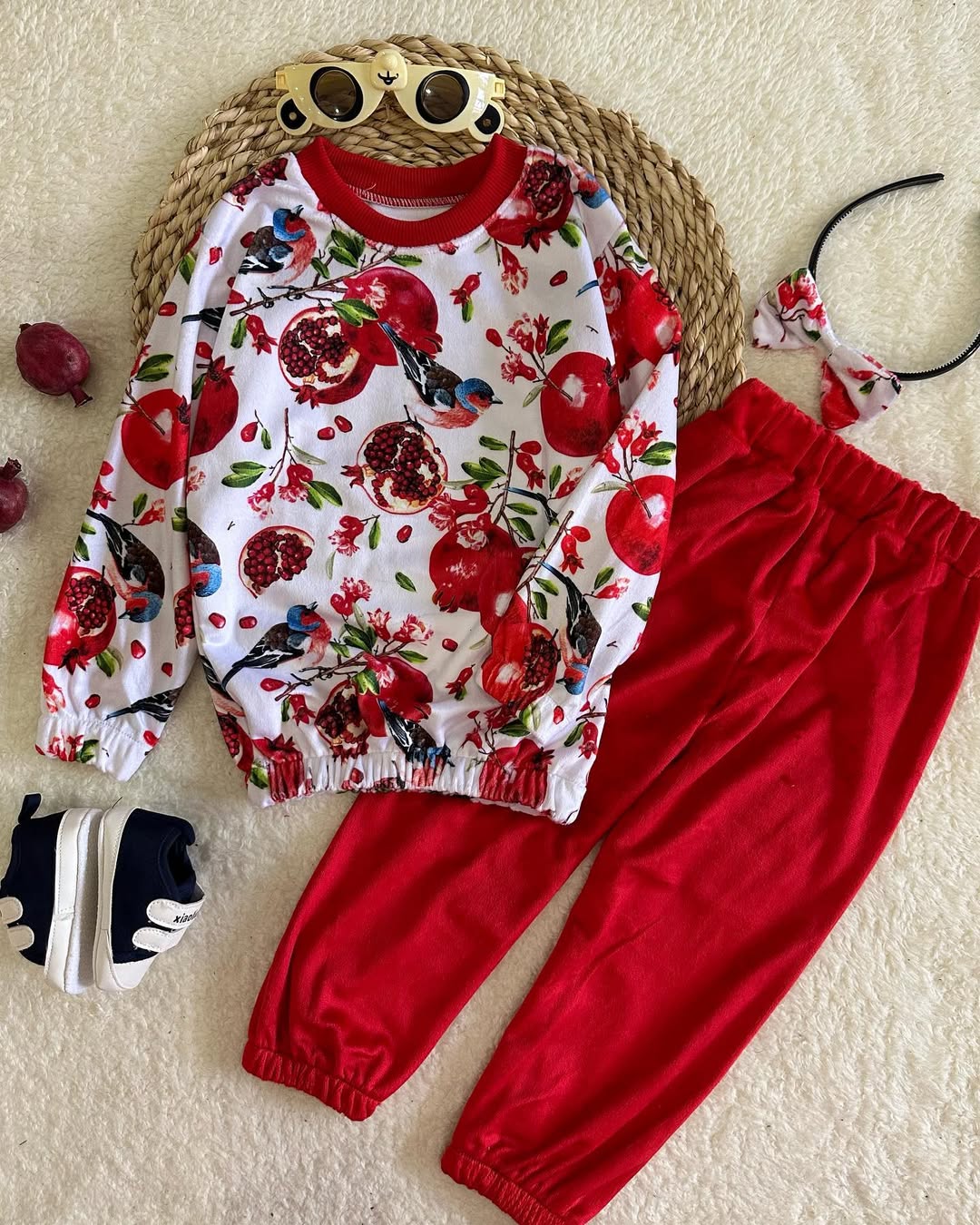 بلوز و شلوار مخمل بچگونه یلدایی انار
